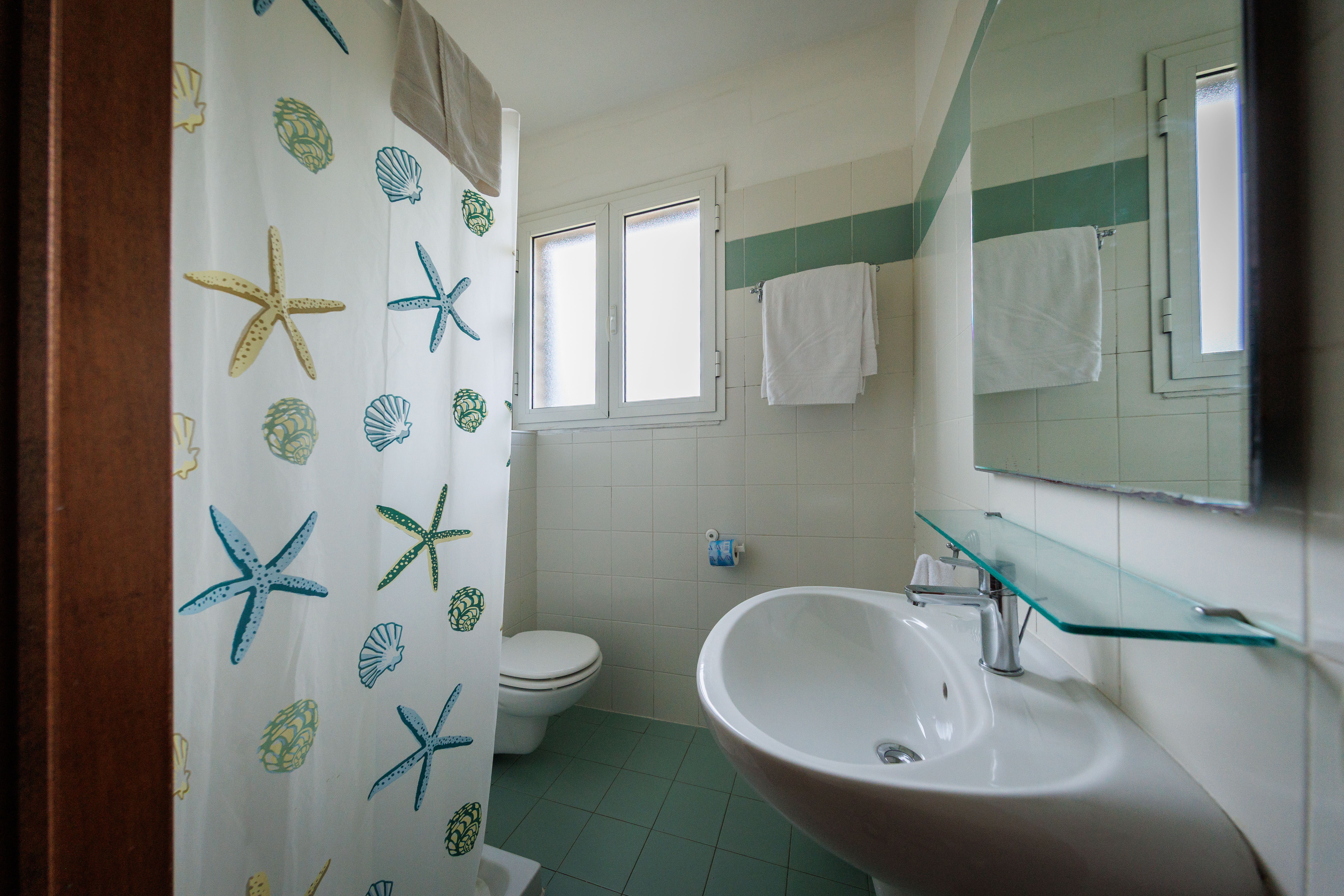 Il bungalow trilocale al piano terra dispone di: 1 soggiorno/camera da letto con divano letto matrimoniale estraibile, angolo cottura, 1 camera da letto con letto matrimoniale, 1 cameretta con 2 letti singoli, telefono, cassaforte, 1 bagno con doccia, 1 terrazza attrezzata.